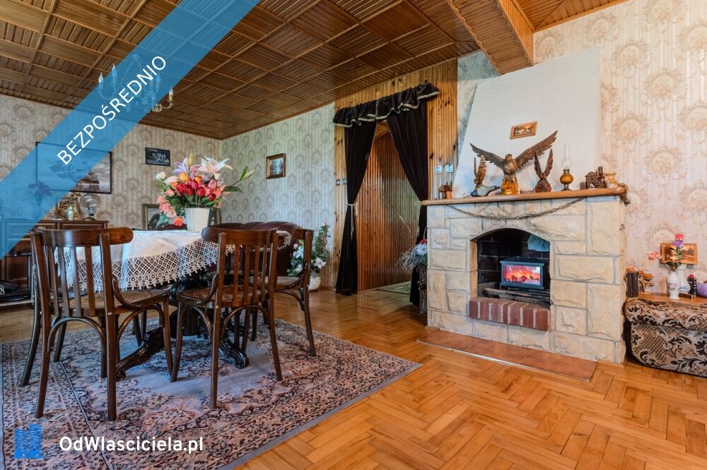 Dom o powierzchni 150m², położony na płaskiej ogrodzonej działce o powierzchni 29,81ar. Dodatkowo poddasze o pow. ok. 70m2 zostało zaadaptowane na użytkowe. Dom ocieplony, dach pokryty blachą, okna 3 szybowe wymienione w 2013 roku. Ogrzewanie piecem gazowym oraz piecem CO.Dodatkowo na działce znajduje się murowane pomieszczenie gospodarcze o pow. 84m2 pełniące obecnie funkcję garażu. Budynek z wielkim potencjałem również do adaptacji na funkcję mieszkalną lub usługową. Tuż obok mieści się blaszany garaż.