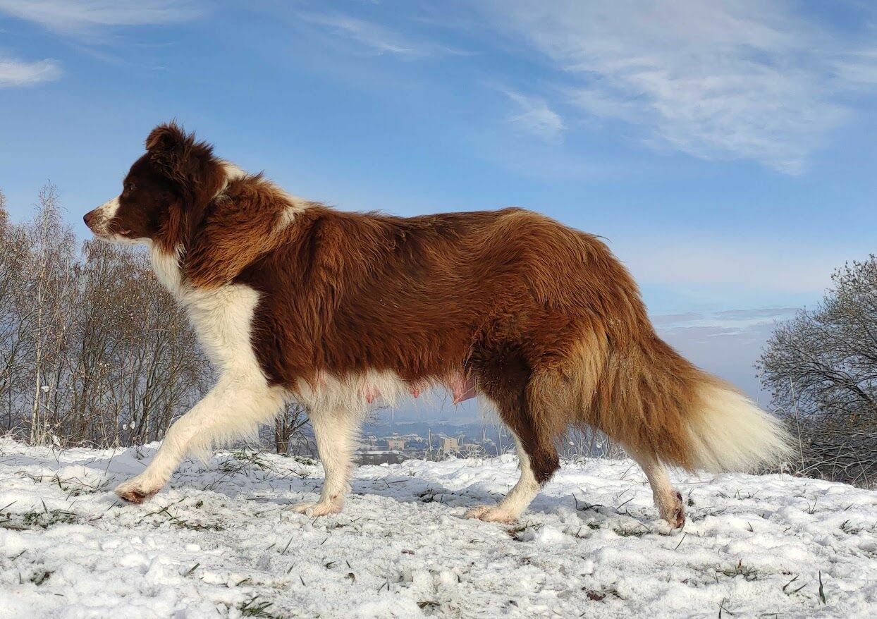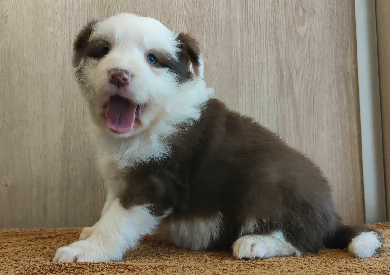 Suczka maści czekoladowo-białej, urodzona: 17.01.2026 r.
